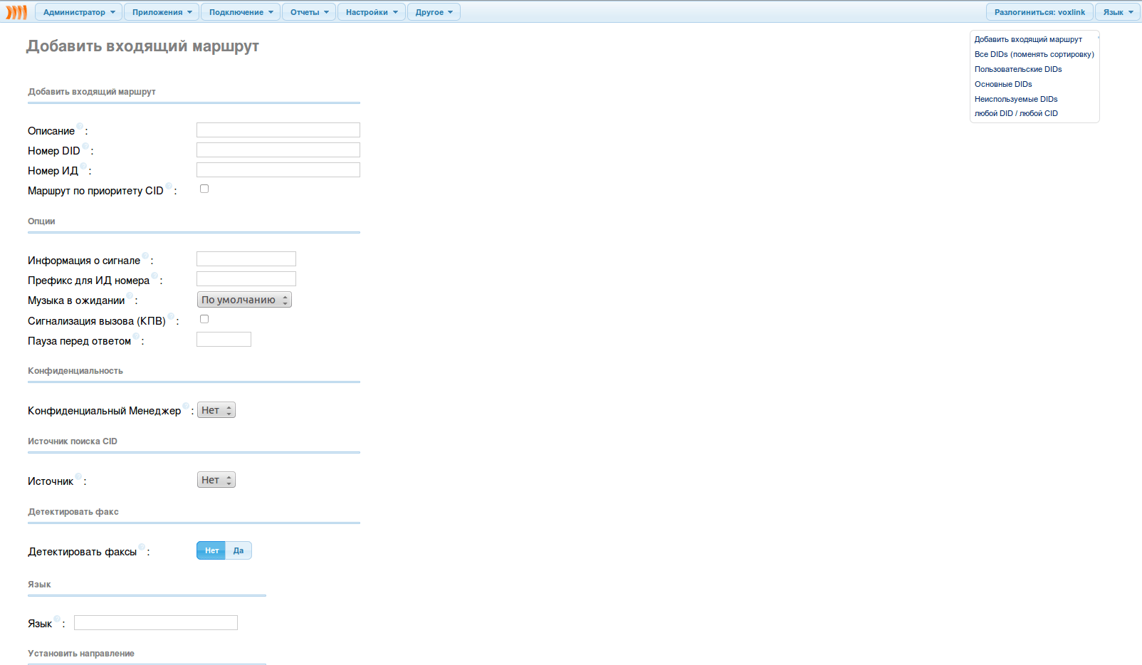 - DID Number (Номер DID): если оставить это поле пустым, то будут приниматься звонки с любым DID или вообще без них и обрабатываться по установленному направлению, которое указано ниже (например звонок будет уходить на IVR или группу вызова)