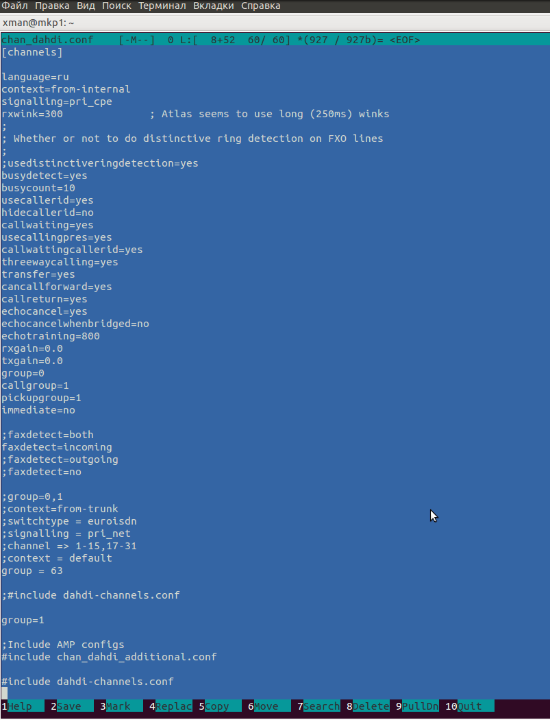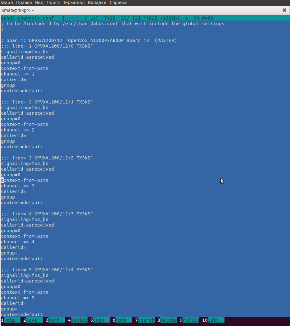 #echo» #include dahdi-channels.conf» >> /etc/asterisk/chan_dahdi.conf