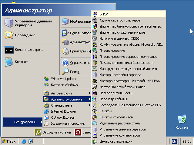 - Запускаем: Пуск>Все программы>Администрирование>DHCP